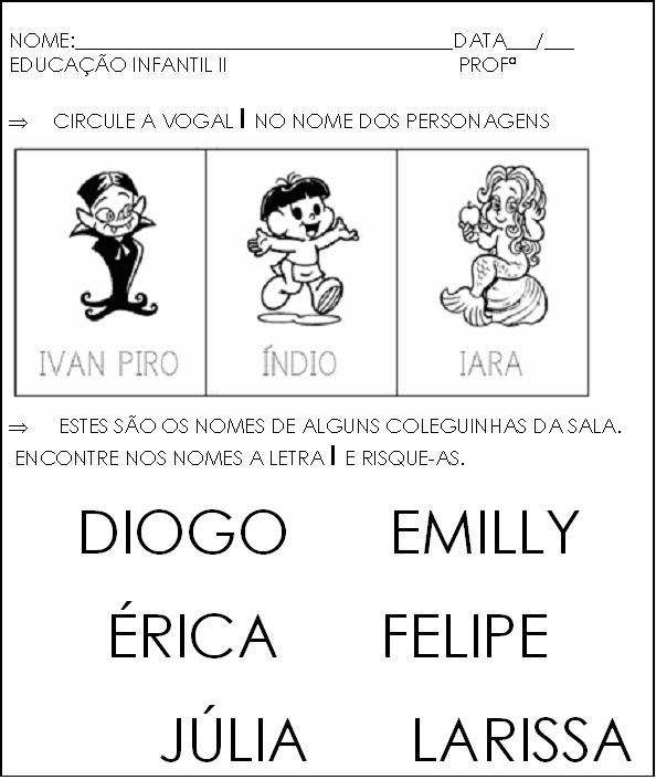 Atividades com as letras do alfabeto: I
