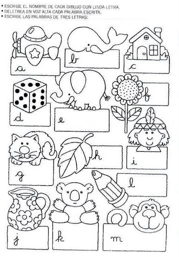 Escribe el nombre de cada dibujo con linda letra. Deletrea el voz alta cada palabra escrita. Escribe las palabras de tres letras.