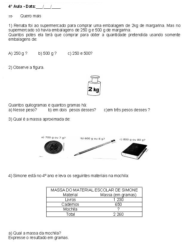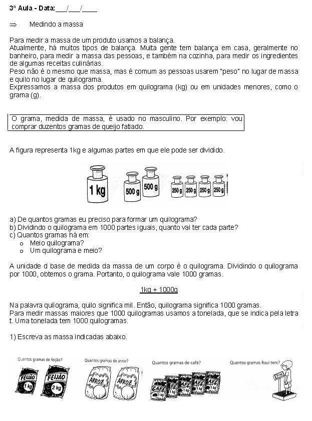 Medida de capacidade: Medindo a massa dos objectos