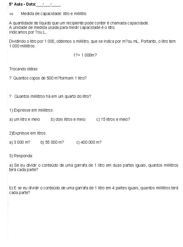 Medida de capacidade: litro e mililitro