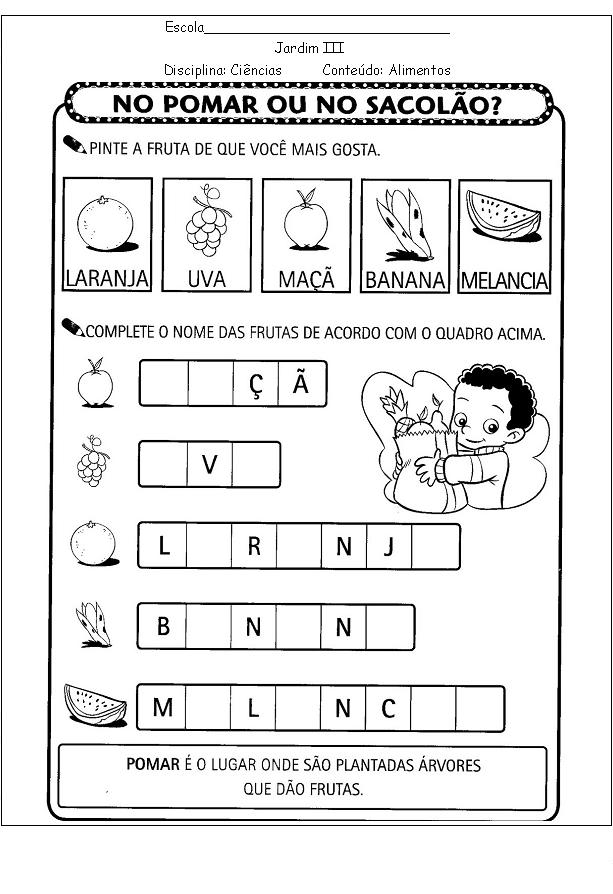 1º ano Estudo dos Alimentos Sofia, 04.05.12 Tags:1º anoalimentaçãoalimentosatividades 1º anoatividades alfabetizaçãoprimeiro anotema alimentos link do post comentar favorito Mais para ler