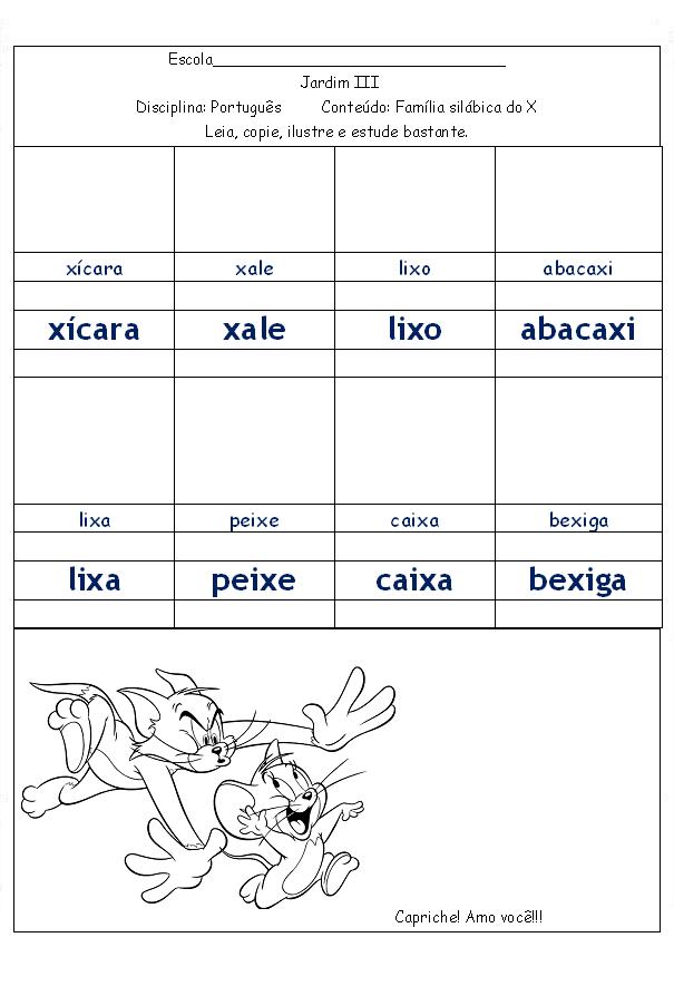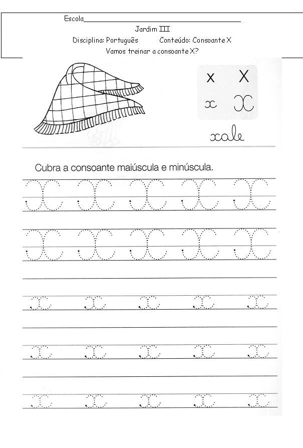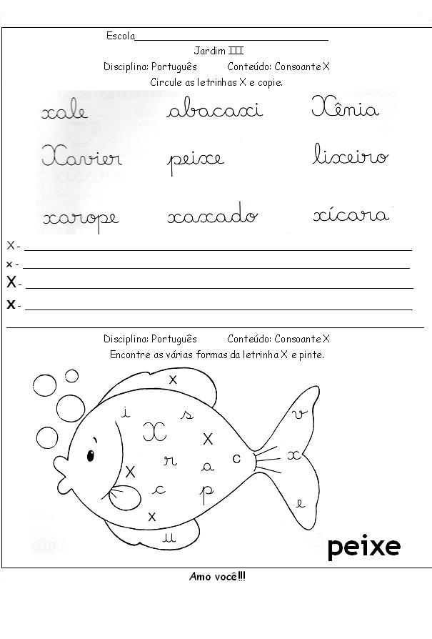 1º ano Atividade com a Consoante X Sofia, 12.02.12 Tags:1º anoatividadesatividades com a letra xatividades com alfabetoatividades com consoantesatividades de alfabetizaçãoatividades educativas para imprimirconsoante xprimeiro ano link do post comentar favorito Mais para ler
