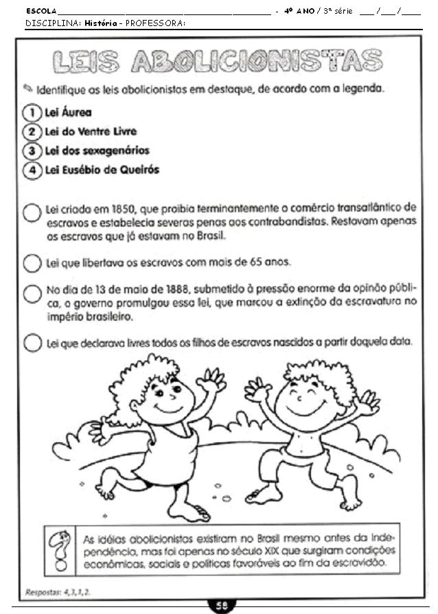 Atividades de História: 4º Ano: A Abolição