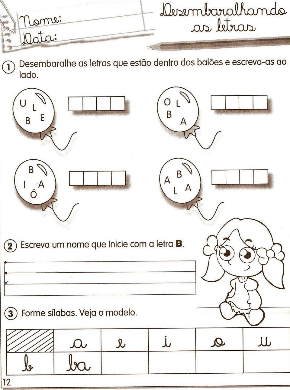 Alfabetização - Atividades para o 1º e 2º ano, letra b, família sílábica, formando sílabas,